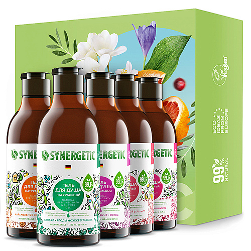 SYNERGETIC Подарочный набор SYNERGETIC гелей для душа: полная коллекция ароматов, 380 мл *5 шт. - Разбор состава