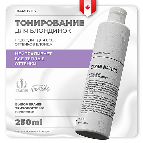 URBAN NATURE Шампунь тонирующий для светлых волос PURE BLONDE PLATINUM - Разбор состава