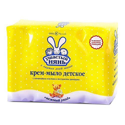 Лицо: Снятие макияжа, Очищение : УШАСТЫЙ НЯНЬ Крем-мыло детское 0+ с оливковым маслом и ромашкой