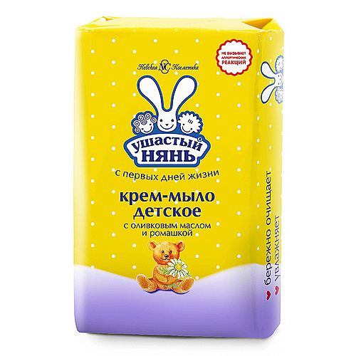 Лицо: Снятие макияжа, Очищение : УШАСТЫЙ НЯНЬ Крем-мыло детское 0+ с оливковым маслом и ромашкой