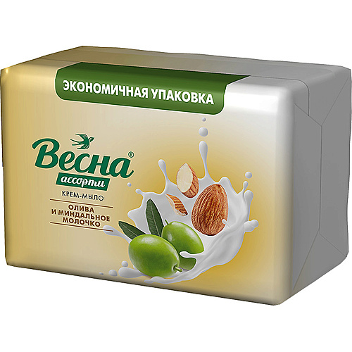 Лицо: Снятие макияжа, Очищение : ВЕСНА Крем-мыло твердое олива и миндальное молочко