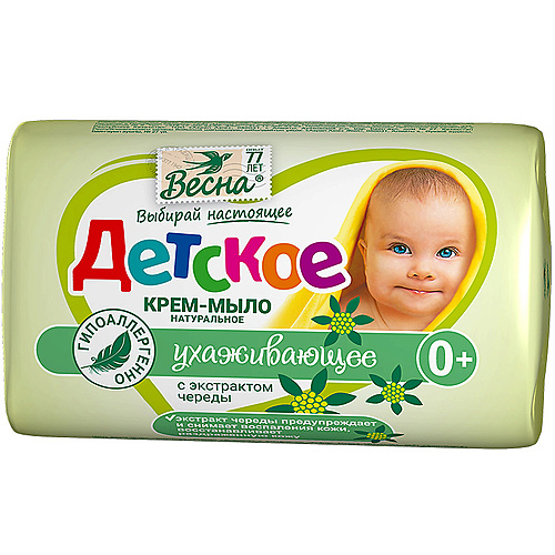 Лицо: Снятие макияжа, Очищение : ВЕСНА Мыло твёрдое Детское крем-мыло регенерирующее (с экстрактом череды)
