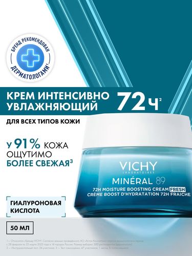 Vichy Mineral 89 Интенсивно увлажняющий крем для всех типов кожи лица, 72 часа увлажнения, с гиалуроновой кислотой, ниацинамидом и витамином E, 50 мл - Разбор состава