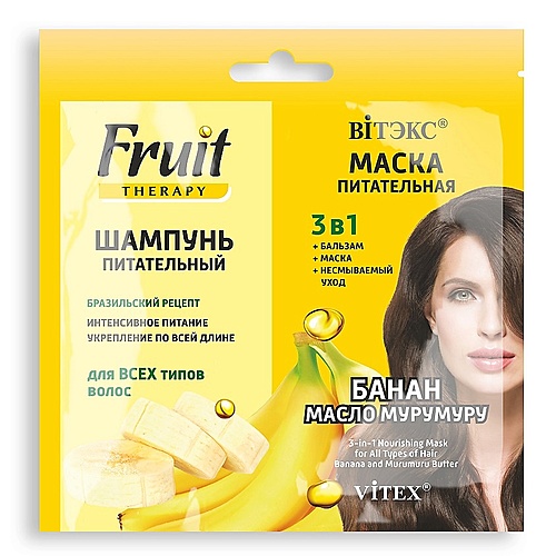 Волосы: Шампунь : ВИТЭКС Шампунь питательный Маска питательная 3в1 Fruit Therapy Банан и масло Мурумуру