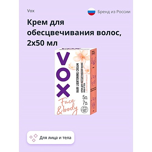 VOX Крем для обесцвечивания волос для лица и тела 2x - Разбор состава