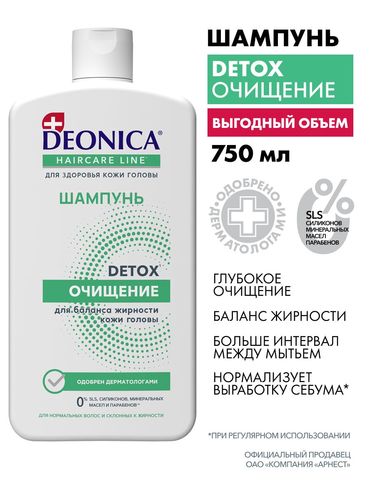 Женский шампунь для волос и жирной кожи головы Deonica Detox Очищение 750 мл - Разбор состава
